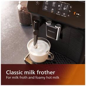 Máquina de café expresso Philips EP122004 com painel digital, bico de leite clássico, moedor ajustável em 12 etapas e sistema de preparo inteligente.Moedor de café integrado