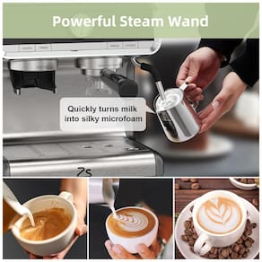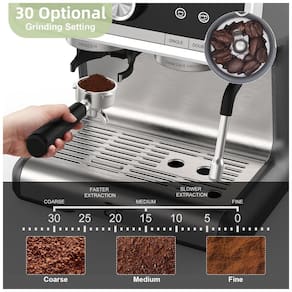 Máquina de café expresso profissional com moedor embutido e bocal de leite.Moedor de café integrado