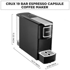 QUEBRA COMO UM PRO Desfrute de café com qualidade de barista no conforto da sua casa. Com um poderoso sistema de fabricação de cerveja e 19 bar de pressão, a fabricante de café expresso CRUX cria uma xícara perfeita todas as vezes. Totalmente programável, é compatível com cápsulas da linha Nespresso.