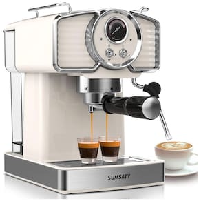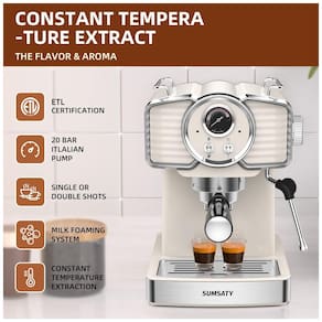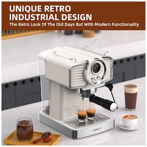 Máquina de café expresso retrô 20 Bar com bocal de leite, tanque de água removível de 1,8L, 110V, 1350W. Design vintage, ideal para preparar expresso, cappuccino e café com leite.Moedor de café integrado