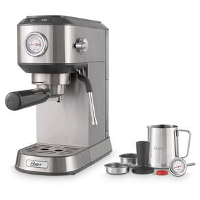 Maquina de Café Manual Espresso Oster Compacta Perfect Brew Voltagem: 220v Transforme sua cozinha em um verdadeiro bar de café com a Cafeteira Espresso Compacta Perfect Brew da Oster. Seu design moderno em aço inox une elegância e praticidade, ocupando pouco espaço sem abrir mão da performance, ideal para quem busca qualidade e estilo em ambientes compactos. Principais benefícios para máxima conversão: Extração Precisa com 15 bar e medidor integrado, para espresso cremoso e encorpado. Tecnologia Thermoblock Dupla Independentes , garantindo aquecimento rápido e temperatura estável para realçar o sabor autêntico do café. Espumador de Leite e Termômetro para criar aquela espuma aveludada de cappuccino e latte art perfeita em casa. Porta-filtro em aço inoxidável, suporta até duas doses simultâneas, oferecendo versatilidade para diferentes receitas. Design Compacto e Durável: estrutura sólida, acabamento inox e bandeja de resíduos removível para limpeza fácil e rápida. Marca: Não Informado