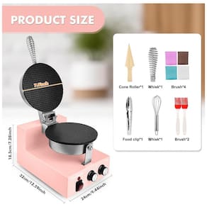 Compatível com voltagem 110V, a máquina facilita o uso em ambientes profissionais com aquecimento uniforme em duas placas de alumínio fundido. Inclui rolo formador de casquinha e ferramentas auxiliares para modelagem precisa. Suas dimensões compactas e estrutura em aço inoxidável suportam uso intensivo.