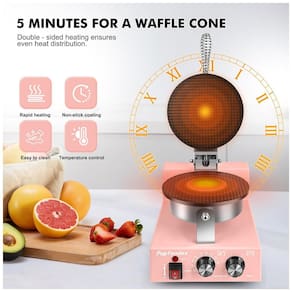 A máquina de casquinha de sorvete Popfoodex é um equipamento comercial projetado para produzir casquinhas para sorvete de forma eficiente em sorveterias e estabelecimentos de alimentos. Possui placa de aquecimento antiadesiva de 20 cm de diâmetro e controle de temperatura ajustável de 50°C a 300°C, permitindo personalização do preparo. O modelo conta com temporizador e potência de 1200W para operação rápida.