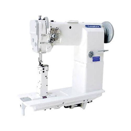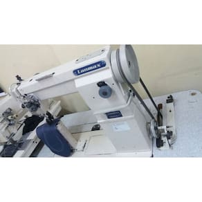 Máquina de Coluna Transporte Simples 2 Agulhas LANMAX LM34018-1. Coluna 2 agulhas transporte simples com lançadeira pequena, retrocesso e lubrificação manual. Utilizada para costura leve e média. Aplicação em carteiras, cintos, bolsas, sandálias e cabedais. 2 Agulhas, Sistema de transporte simples, Agulha DPx5, Velocidade 2000 p.p.m., Retrocesso manual, Ponto de até 5 milímetros, Lançadeira Pequena.Funções