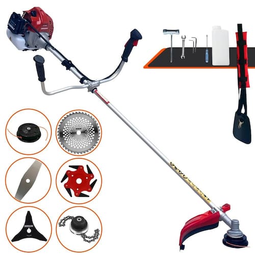 Com guidão ergonômico lateral, permite um alcance amplo e maior mobilidade, capaz de aumentar a produtividade diária. Possui motor 2 tempos á gasolina, de 43 Cilindradas; 1,7HP de potência que proporcionam maior performance e economia na operação. Seu conjunto de acessórios inclui kit de ferramentas, cinto de suporte almofadado, carretel de nylon e lâmina de corte 3 pontas.