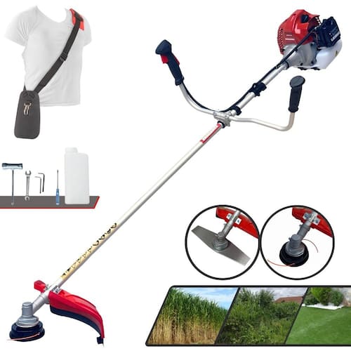 Com guidão ergonômico lateral, permite um alcance amplo e maior mobilidade, capaz de aumentar a produtividade diária. Possui motor 2 tempos á gasolina, de 43 Cilindradas; 1,7HP de potência que proporcionam maior performance e economia na operação. Seu conjunto de acessórios inclui kit de ferramentas, cinto de suporte almofadado, carretel de nylon e lâmina de corte 3 pontas.