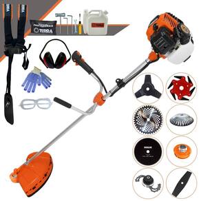 Roçadeira Lateral Terra GR520XP À Gasolina 2 Tempos 52cc 2,5HP Com Lâmina 40 Dentes + Faca 2 Pontas 330mm 2,7mm + Faca 3 Pontas 255mm 2,9mm + Faca 6 Pontas 250mm + Faca 80 Dentes 255mm 1,5mm + Escova Rotativa 38 Cerdas 200mm + Trimmer