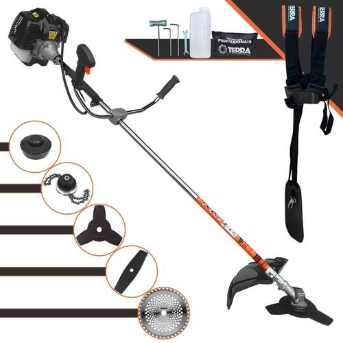 Roçadeira Lateral Terra GRH-430 Black À Gasolina 2 Tempos 43cc 1,7HP + Faca 2 Pontas 330mm 2,7mm + Faca 40 Dentes 255mm 2mm + Trimmer