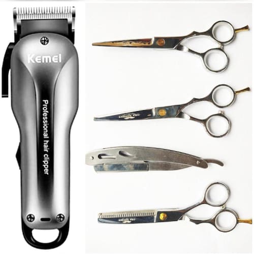 Maquina De Cortar Cabelo Kemei 2603 + Kit Tesouras