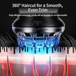 -?Corte seu próprio cabelo, sem necessidade de ajuda?: Esta máquina de cortar cabelo elétrica possui uma lâmina redonda de 360°, perfeita para cabelos curtos, cortes de cabelo e careca, permitindo que você corte o cabelo facilmente em casa! A lâmina se move para frente e para trás em alta velocidade para aparar o cabelo com eficiência, oferecendo um corte nítido e durável sem danificar o couro cabeludo. No entanto, evite colocar a orelha dentro do círculo da lâmina.