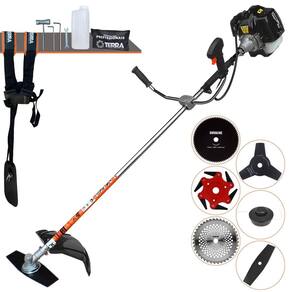 Roçadeira Lateral Terra GRH-520 Black À Gasolina 2 Tempos 52cc 2,5HP + Faca 3 Pontas 255mm 2,9mm + Faca 40 Pontas 255mm 2mm + Faca 80 Pontas 255mm 1,5mm + Faca 6 Pontas 250mm