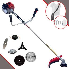 Com guidão ergonômico lateral, permite um alcance amplo e maior mobilidade, capaz de aumentar a produtividade diária. Possui motor 2 tempos á gasolina, de 43 Cilindradas; 1,7HP de potência que proporcionam maior performance e economia na operação. Seu conjunto de acessórios inclui kit de ferramentas, cinto de suporte almofadado, carretel de nylon e lâmina de corte 3 pontas.