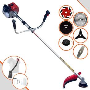 Com guidão ergonômico lateral, permite um alcance amplo e maior mobilidade, capaz de aumentar a produtividade diária. Possui motor 2 tempos á gasolina, de 52 Cilindradas; 2,5HP de potência que proporcionam maior performance e economia na operação. Seu conjunto de acessórios inclui kit de ferramentas, cinto de suporte almofadado, carretel de nylon e lâmina de corte 3 pontas.