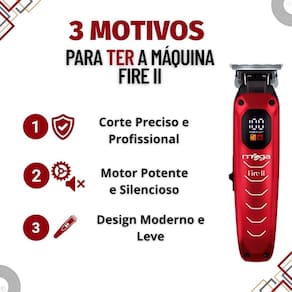 Desperte o poder da precisão e da versatilidade com a Máquina de Corte e Acabamento Mega Fire II. Projetada meticulosamente para os exigentes padrões de barbearias e salões, esta máquina oferece um desempenho incomparável. Ela resolve a necessidade de cortes perfeitos e eficientes, atendendo tanto profissionais quanto usuários domésticos que buscam resultados de alta qualidade.