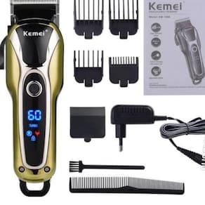 Kemei desenvolveu o modelo km 1990 uma maquina de corte, com motor potente com duas velocidades ajustável, adequado para todos os tipos de corte de cabelo. Uma conveniente alavanca da lâmina para ajustar o comprimento da lâmina, proporcionando um desempenho mais suave e mais preciso em seu cabelo. Há uma tela de lcd sobre o corpo, que pode exibir a energia restante intuitiva. Lâmina de aço inoxidável para aparar o cabelo rapidamente e com precisão, nenhum cabelo ficar preso e não ferir a sua pele. Equipado com 4 diferentes comprimento limite combs 3mm, 6mm, 10mm, 13mm ,você pode facilmente controlar o comprimento do cabelo que você deseja cortar e criar vários estilos de cabelo. Cabo e sem fio de dupla utilização, não mais se preocupar com nenhuma eletricidade, mais conveniente. Após 3 horas de carga completa, ele pode ser utilizado continuamente por 120 minutos. Para um bom desempenho do equipamento após cada trabalho, passe a escova de limpeza e se necessário lubrifique a lâmina isso deixa o equipamento com alto rendimento. Especificação: material: abs tensão: 110-240 v frequência: 50/60hz potência: 5 w tempo de carregamento: 3 horas usando o tempo: 120 minutos manual do usuário é errado para o tempo de carga e tempo de uso conteúdo do pacote: 1 hair clipper 1 lâmina de capa protetora 4 limite combs 3, 6, 10, 13mm 1 pente 1 escova de limpeza 1 adaptador