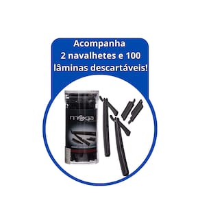 2 Navalhetes 100 Lâminas descartáveis Você tem a facilidade que a embalagem vira um pote para descartar as lâminas já usadas.