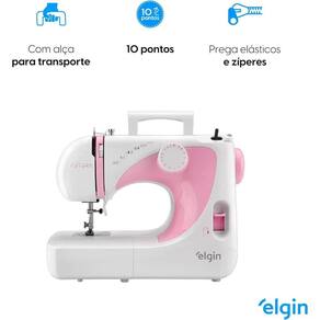 Máquina de Costura Elgin Futura JX-2040 10 Pontos 127V Branca/Rosa