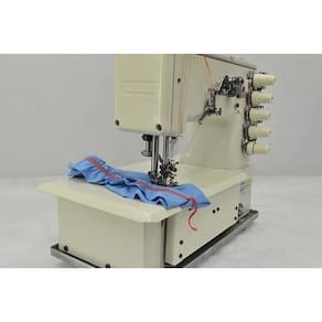 Informações do produto: Máquina de costura industrial galoneira direct drive. Aplicação para bainha, debrum (colarete) e rebatimento de elástico. Detalhes técnicos: 3 agulhas 5 fios Largura da costura = 6,35mm Altura calcador = 6mm Tipo agulha UY128x10#-14# Comprimento máximo do ponto = 4mm Lubrificação automática Rotação máxima = 6000 RPM Motor Direct drive (motor acoplado internamente na máquina) Informações sobre a garantia: Garantia contra defeitos de fabricação e de assistência técnica por 365 dias, contra defeitos de funcionamento em condições normais de uso. O serviço de mão de obra dentro do prazo da garantia, só será SEM CUSTO se o cliente enviar ou trouxer o produto em nossa oficina. A MONTAGEM É FEITA POR CONTA DO COMPRADOR !