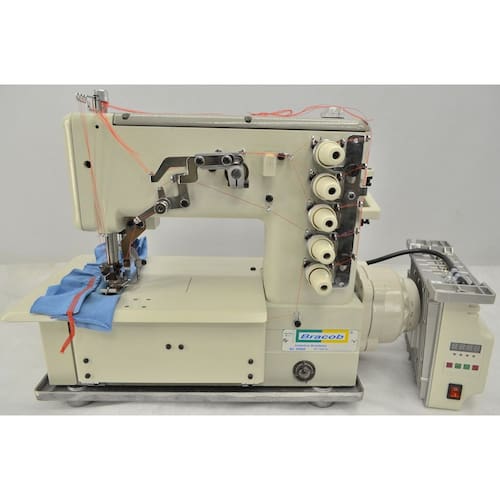 Esta máquina é acionada por moderno servo-motor diretamente acoplado ao cabeçote da máquina . A Bracob BC5000AT ganha em economia de energia (63% de economia) e praticidade de uso atraves do sistema de posicionamneto automático de agulha (em cima ou ebaixo) Alteração eletrônica via parâmetros da velocidade/rotação de trabalho desejada . Baixo nível de ruídos durante a operação . -Esta máquina é industrial com 3 agulhas e trançador. -Com uma velocidade menor que das galoneiras convencionais a Galoneira da marca Bracob não deixa a desejar em nada para as galoneiras industriais de alta rotação, somente perdendo em questão de velocidade. Esta máquina é ideal para quem esta iniciando ou que não faz questão de tanta velocidade, serviços sob medida, costureiras que trabalham com conserto de roupas etc. -Esta máquina é completa com mesa formica, pé de ferro e motor direct drive acoplado ao cabeçote, como todas as outras maquinas convencionais.