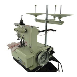 Máquina de costura tipo galoneira. Aplicação para bainha, debrum colarete e rebatimento de elástico. Características: - 3 agulhas - 4 fios - largura da costura = 6,35mm - altura calcador = 6mm - tipo agulha b63 - comprimento máximo do ponto = 4mm - lubrificação manual com buchas auto-lubrificantes a base de grafite e eixo central acoplado em 2 rolamentos - buchas da barra de agulha em bronze sinterizado - rotação máxima = 2000 rpm - motor = 1725 rpm - potência = 250w - polia motor= ø80mm - marca:bracob - modelo:bc 2600-3p - voltagem:110v