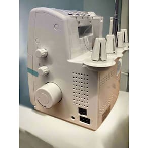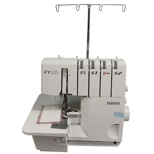 Máquina de overlock doméstica multifuncional Yamata FY525. Adequada para tecidos leves a médios. Possui funcionalidades de overlock e pode ser de 3 ou 4 fios. Bainha enrolada integrada. Alimentação diferencial. Comprimento e largura do ponto ajustáveis. Guia de rosca com código de cores. Design robusto e confiável.Alça retrátil