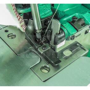 Faz simultaneamente a costura e o chuleio (acabamento das bordas para que não se desfiem).
