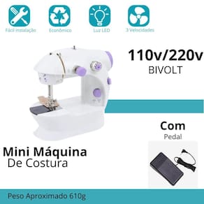 Descrição do anúncio: A mini máquina de costura reta portátil bivolt doméstica compacta sm-202a é a ferramenta perfeita para todas as suas necessidades de costura, sejam elas básicas ou criativas. Ideal tanto para iniciantes quanto para profissionais experientes, essa máquina oferece praticidade e versatilidade com seu design leve e portátil, podendo ser utilizada tanto conectada à tomada quanto com pilhas. Com diversos recursos úteis, como seleção ajustável de pontos e lâmina para cortar linha, essa máquina é durável, confiável e fácil de armazenar em pequenos espaços. Conteúdo da embalagem: 01 mini máquina de costura 01 fonte de energia com tomada 01 pedal de acionamento 04 mini carretéis de linha Características: Ponto fixo de duas linhas Seletor de alta/baixa velocidade Costura dianteira e reversa Rebobinamento automático da linha Comprimento ajustável do ponto manual ou pedal para iniciar Luz projetada no local da costura Ajuste de posições Lâmina para cortar a linha Construída com materiais de alta qualidade para desempenho estável e preciso Especificações: Modelo: mini máquina de costura sm-202a Material: plástico resistente, metal, componentes elétricos Alimentação de energia: tomada plugue padrão eu ou 04 pilhas aa não inclusas Voltagem: 110v/220v Dimensões aproximadas: 19cm altura x 19cm comprimento x 9,5cm largura Peso aproximado: 610g Principais perguntas sobre o produto e respostas: A máquina de costura é bivolt Sim, a mini máquina de costura sm-202a é bivolt automático. Posso usar a máquina sem estar conectada à tomada Sim, a máquina pode ser utilizada com 4 pilhas aa não inclusas , proporcionando portabilidade. Quais acessórios estão incluídos na embalagem A embalagem inclui 01 mini máquina de costura, 01 fonte de energia com tomada, 01 pedal de acionamento, e 04 mini carretéis de linha. A máquina é adequada para iniciantes Sim, a máquina é ideal tanto para iniciantes quanto para profissionais, oferecendo diversas funcionalidades e facilidade de uso. Qual é a do produto O vendedor oferece uma de 30 dias para a mini máquina de costura sm-202a. Qual é a velocidade de costura da máquina A máquina faz 110 pontos por minuto. A máquina possui função de costura reversa Sim, a máquina possui função de costura dianteira e reversa. Quais são as dimensões do produto As dimensões aproximadas da máquina são 19cm altura x 19cm comprimento x 9,5cm largura . Qual é o peso do produto O peso aproximado da máquina é de 610g. Posso ajustar o comprimento do ponto de costura Sim, a máquina permite o ajuste do comprimento do ponto de costura. Marca: Não Informado Ean: 7904263832626