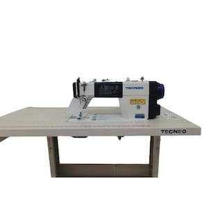 Máquina de costura industrial reta direct drive eletrônica (posicionamento de agulha, calcador e corte automático de fio). Aplicação: Para tecidos planos médios e pesados.