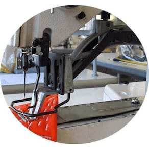 Máquina de costura industrial travete para tecidos médios a pesados.