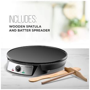 CONVENIENTE E FÁCIL DE LIMPAR A superfície de cozimento extra grande de facilita a criação de crepes com qualidade de restaurante na sua cozinha. Basta pré aquecer, espalhar uma fina camada de massa e assistir seu crepe cozinhar em segundos. Além disso, a superfície de alumínio antiaderente limpa tão facilmente quanto cozinha. Com o zenamento simples do cabo envolvente e a construção estreita do gadget de café da manhã, guarde sua máquina de crepe em qualquer lugar