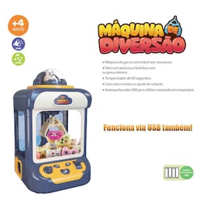 Características: Máquina de garra controlável por alavancas. Vem com pelúcias e bolinhas com Surpresa dentro. Temporizador de 60 segundos. Com sons e música e ajuste de volume. Acompanha cabo usb para utilizar conectado ao computador.