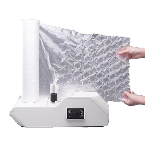 A mais inovadora forma de proteção de transporte de produtos. Leve, econômica e prática para empresas de varejo, e-commerce, lojistas, empresas de transporte em geral. Bolsas de ar em formato almofada e colmeia de ar proteção contra choques contra o chão. O filme já vem serrilhado para maior comodidade. A almofada de ar não ocupa espaço desnecessário em estoque, como papelão, isopor ou outros materiais de proteção ao choque. O filme-rolo poderá ficar armazenado indefinidamente e somente preenchido no momento real de uso. Fácil de manusear, não exige nenhum conhecimento técnico e não requer um operador exclusivo podendo ser manuseado por qualquer pessoa. Importante saber: Máquina não industrial. Não é apropriada para alta produção. Deixar ligado direto no máximo de 3 a 4 horas, deixar a máquina descansar meia hora.