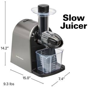 Adicionar mais frutas e vegetais à sua dieta é uma ótima ideia, e o Extrator de Suco de Baixa Velocidade Hamilton Beach pode ajudar a mantê lo forte, seja adicionando suco ao seu estilo de vida ou simplesmente adorando um copo de suco fresco para começar o dia. Ter um extrator de suco em casa facilita o preparo de sucos deliciosos e saudáveis usando suas frutas e vegetais favoritos, sem adição de ingredientes ou conservantes. E o motor silencioso e de baixa velocidade é perfeito para extrair toda a bondade de vegetais, frutas, folhas verdes e grama de trigo. Este espremedor monta muito rapidamente com algumas torções. Quando estiver pronto para o suco, basta conectá lo, configurar os copos de suco e polpa, ligá lo e começar a adicionar frutas ou legumes à calha. A ação mastigatória do espremedor lento esmaga e espreme os produtos para extrair a quantidade máxima de suco. Quando o suco estiver pronto para servir, um separador evita que a espuma saia com o suco. Todas as peças podem ser lavadas na máquina de lavar louça e a limpeza é mais fácil do que a maioria dos espremedores de suco porque o filtro é lavado com água corrente. Siga uma receita do livreto incluído ou crie suas próprias combinações de sabores. Faça suco fresco com esforço mínimo e limpeza fácil. ..agora isso é um bom pensamento Marca: Não Informado