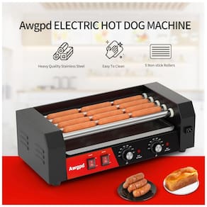 Fabricada em aço inoxidável de qualidade alimentar, a nossa máquina de fazer hot dog elétrica oferece resistência superior à ferrugem e corrosão. Com 5 rolos de aço inoxidável antiaderentes, garantindo facilidade na limpeza. Controle de temperatura duplo, permitindo ajustar separadamente até 250°C para os rolos da frente e de trás. A rotação de 360 graus dos rolos garante um cozimento uniforme. Compacta e eficiente, com bandeja removível para limpeza fácil. Ideal para eventos comerciais ou domésticos.