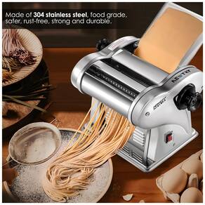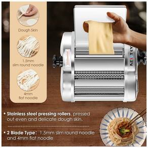 Elevando a experiência de fazer macarrão em casa, a máquina de macarrão da NEWTRY possui lâminas para noodles de 1,5 mm e 4 mm, permitindo a criação de diversos tipos de macarrão. Feita em aço inoxidável 410 de qualidade alimentar, é ideal para uso doméstico diário. Com largura de massa de 14 cm e peso de 7,98 kg, ela possui ajuste de espessura, produzindo folhas de massa delicadas para diversos pratos. Seus knobs atualizados facilitam a operação e garantem durabilidade. Leve, compacta e versátil, é perfeita para uso familiar, proporcionando momentos deliciosos e saudáveis em casa!