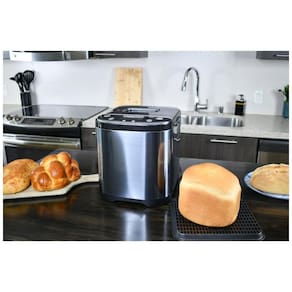 Máquina de Fazer Pão Automática Frigidaire com 15 configurações, capacidade de até 1 kg, painel antiaderente, janela de visualização, bipe para adicionar ingredientes.Acessórios