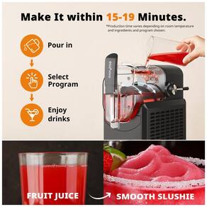 Seja seu próprio bartender, desde opções para crianças até drinks alcoólicos! Com 5 configurações pré-definidas, as possibilidades são infinitas! Prepare um milkshake espesso para as crianças e, em seguida, mude para o modo coquetel para um frozen alcoólico, tudo com a mesma máquina. Dica profissional: experimente rosé congelado para uma noite entre amigas! Adeus aos cubos de gelo, saboreie o puro sabor, sem diluição! Nossa máquina de frozen preserva toda a intensidade das suas bebidas favoritas - sucos, refrigerantes, coquetéis - sem um único cubo de gelo. Sinta a diferença a cada gole! Configure e esqueça, pronto em 15 minutos! Basta despejar, apertar um botão e deixar a máquina fazer o trabalho! Seja um smoothie pós-treino ou uma margarita no happy hour, sua bebida gelada estará pronta antes que perceba. Pronta para a festa por 12 horas, sem bagunça derretida! Ao realizar um churrasco ou assistir a um jogo, nosso barril mantém as bebidas geladas a noite toda, sem precisar correr de volta ao liquidificador. Curiosidade: isso é suficiente para 10 margaritas! Limpeza em 5 minutos no máximo.Festas de frozen não devem terminar com sujeira!