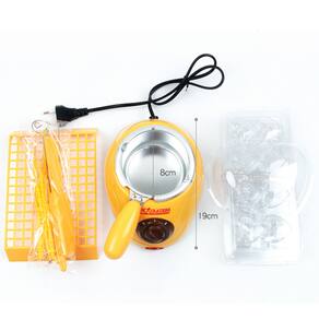 Máquina de fusão de chocolate Derrete o chocolate rapidamente sem água. Botão rotativo com operação de três posições, fácil de usar. Adequado para fazer qualquer tipo de chocolate e receitas de couverture. Ideal para os entusiastas da culinária. Ideal para qualquer celebração. Descrição Máquina para derreter chocolate - Cor: Amarelo. - Capacidade de 250gr - Medidas da fundição: 8x14x 19cm. - Medidas de embalagem: 15x 19x19 cm - Tensão: 220-240 V. - Frequência: 50/60 Hz. - Potência: 20W. - Cabo de plugue: aproximadamente 77cm. - Inclui 6 moldes de plástico (coração grande, corações pequenos, quadrado, estrela, árvore de Natal, grão de café e ursos) - Derrete chocolate rapidamente sem água. - Botão rotativo com operação de três posições, fácil de usar. - Adequado para fazer qualquer tipo de chocolate e receitas de couverture. - Ideal para os entusiastas da culinária. Ideal para qualquer celebração.