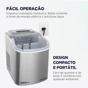 Produto: Máquina de Gelo 12 kg Turbo Ice Premium cinza MG-12-GI Marca: Mondial Voltagem: 110VDescrição: A Máquina De Gelo 12 kg Turbo Ice Premium cinza MG-12-GI da Mondial é garantia de praticidade e sofisticação na produção de gelo. Com capacidade de produzir até 12 kg por dia, ela é perfeita para deixar bebidas e drinks refrescantes no almoço de família, churrasco com amigos e até na rotina diária nos dias mais quentes. Possui design moderno e dispensa instalação hidráulica, preparando gelo com facilidade em menos de 10 minutos. Saiba mais sobre a MG-12-GI da Mondial: Alta Capacidade: 12 Kg Por Dia: a Máquina De Gelo Mondial Tem Capacidade De Produção Diária De Até 12 Quilos. Dê Adeus À Preocupação Se Encheram A Forminha De Gelo Ou Não Gelo Em 8 Minutos: produz 9 Cubos A Cada Ciclo De 8 Minutos. Incrível, Né Produza Gelo De Forma Superágil O Tempo De Preparo Pode Variar Dependendo Das Condições Do Ambiente E Temperatura Da Água. 2 Tamanhos De Gelo: antes De Iniciar O Ciclo, Selecione Entre Cubos Pequenos Ou Grandes. Reservatório De Água: 1,3 Litros: possui Reservatório De Água Com Capacidade De 1,3 Litros. Garantia De Bebidas Geladas A Hora Que Desejar E Em Qualquer Lugar Painel Digital + Indicador De Funcionamento: o Painel Digital Possui Uma Operação Intuitiva E É Fácil De Utilizar. Além Disso, O Painel Possui Indicador Para Acrescentar Água Ou Para Esvaziar O Cesto De Gelo. Fácil Operação: esqueça As Complicações Com Instalação Hidráulica A Máquina De Gelo Da Mondial Foi Pensada Para Ser Prática: Basta Conectá-La A Uma Fonte De Energia Elétrica E Adicionar Água No Reservatório Para Garantir Gelo Fresco E Abundante Sempre Que Quiser. Design Compacto E Portátil: não Ocupa Muito Espaço E É Fácil De Guardar. Além Disso, É Fácil De Levar Onde Quiser E Combina Com Qualquer Ambiente Tampa Com Visor Transparente: facilita A Visualização Durante O Preparo. Você Não Precisa Ficar Abrindo A Tampa Para Verificar O Andamento Da Produção Do Gelo. Acessórios: acompanha Cesto E Pá Para Facilitar A Retirada Do Gelo. Um Ano De Garantia Mondial: a Mondial É A Escolha De Milhões De Consumidores. Mondial, A Escolha InteligenteEspecificações: Cor: CinzaConsumo de energia: 0,12Kw/hPotência: 120WTempo de Preparo: 8 MinutosReservatório de Água: 1,3 LCapacidade: 12 Kg por diaAção do produto: Fazer geloLuz indicadora: SimTamanhos de Gelo: Pequeno e grande.Itens Inclusos: 01 Cesto para gelo 01 Pá para gelo.