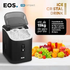 Compacta e portátil, ideal para festas e acampamentos. Painel de controle intuitivo com indicadores luminosos. Produção rápida de gelo. Sistema de auto-limpeza. Proteção contra superaquecimento. Produz gelo a partir de água potável. Gás ecológico R600a.Capacidade de armazenamento de gelo