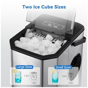 Fabricação de gelo de alta eficiência os fabricantes de cubos de gelo Garvee apresentam um refrigerador premium com aletas com uma grande área de dissipação de calor, resultando em excelente eficiência de resfriamento. Com apenas 6 minutos por ciclo, você pode obter 9 cubos de gelo em forma de bala e até 11,7 quilogramas de gelo podem ser produzidos em 24 horas. O revestimento de grau alimentício garante que não haja odores anormais, tornando o para uso. Operação com um toque fácil de usar com um painel de controle simples. Basta adicionar água, selecionar o tamanho do gelo pequeno e grande são opcionais e está pronto para funcionar. Quando não houver água suficiente ou quando o balde de gelo estiver cheio, o indicador acenderá, lembrando que você deve adicionar mais água ou remover os cubos de gelo extras. A camada espessa de espuma garante um bom efeito de isolamento, evitando que o gelo derreta por 5 a 8 horas em temperatura normal. Design compacto e caixa de aço inoxidável medindo 22, P x 29, L x 29 centimetros A e vem com uma alça superior para fácil portabilidade. Isso torna a máquina de gelo uma excelente escolha para casa, cozinha, escritório, cafeteria, festas, bar ou até mesmo para viajantes em trailers, onde o espaço é limitado, mas o gelo ainda é necessário sob demanda. Feito de aço inoxidável, este fabricante de gelo é durável e oferece uma vida útil mais longa. Baixo ruído e fácil de limpar a máquina de fazer gelo de bancada opera silenciosamente devido ao seu compressor potente, condensador de alta qualidade e refrigerante R600a ecológico. Ela resfria rapidamente e consome menos energia. O invólucro durável de aço inoxidável é fácil de limpar e possui um acabamento suave. A máquina de fazer gelo também possui um bico e um bujão de drenagem na parte inferior para facilitar o esvaziamento da água não utilizada Marca: Não Informado