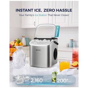 Fácil de usar e operação simples O fabricante de gelo Euhomy adota um design visualizado por uma grande janela transparente, permitindo a visualização do interior da fabricação de gelo. Equipado com um compressor atualizado de 170W que consome cerca de 4 kWh, 24 horas de energia para economizar em suas contas de eletricidade. E com um painel de controle de fácil operação para uma operação mais rápida em apenas duas etapas, adicionando água e pressionando ON, OFF. Então, nosso fabricante de gelo fornecerá gelo fresco para você e seus familiares em tempo hábil
