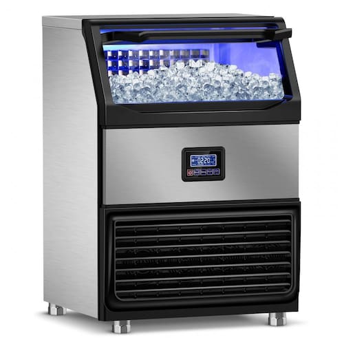 A máquina de gelo comercial RAPSUAR produz até 159 kg de gelo por 24 horas, com bin de armazenamento de 34 kg, ideal para uso residencial, bares, escritórios, restaurantes e ambientes comerciais. Gera 108 cubos de gelo em apenas 8 minutos graças ao compressor potente de 750W, que garante resfriamento rápido e operação contínua. O painel LCD intuitivo permite ajuste preciso do tempo de produção e espessura dos cubos, com sistema de diagnóstico integrado para identificação rápida de falhas e função de autolimpeza para manutenção simplificada.
