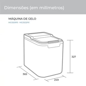 Produz até 15kg de gelo por dia | Reservatório de 2,2 litros | Armazena até 500g de gelo | Escolha o tamanho do geloCapacidade de armazenamento de gelo
