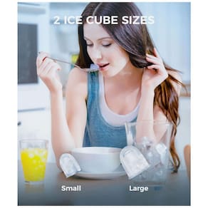 O Dobro da Diversão: A máquina Ecozy oferece dois tamanhos de gelo! Escolha os cubos grandes para resfriar rapidamente cafés ou sucos, ou os cubos pequenos para manter os ingredientes frescos e suas guloseimas geladas em sacos de gelo ou lancheiras.
