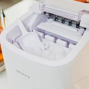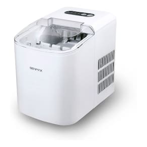 Produção de até 15 kg de gelo em 24 horas, cubos no formato dedal em dois tamanhos (pequeno e grande), acabamento em plástico de alta densidade, uso portátil e compacto.Água gelada