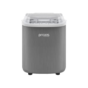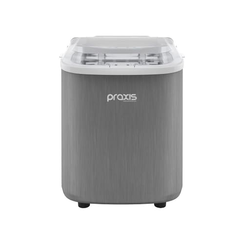 Máquina de Gelo Praxis MGP12, produz até 12kg de gelo em 24 horas, reservatório de 1,2 litros, ciclo de produção de 9 minutos, disponível em 127V e 220V.Capacidade de produção de gelo