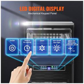 Painel de Controle Inteligente: Com um display digital LED e botões mecânicos, a máquina oferece controle preciso sobre o processo de fabricação de gelo. Você pode ajustar facilmente a espessura do gelo, aumentando ou diminuindo o tempo de produção conforme sua necessidade. E para tornar a manutenção ainda mais simples, a máquina vem com uma função de autolimpeza de um toque, tornando a limpeza rápida e prática.