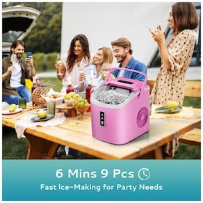 Design portátil e cubos de gelo perfeitos: Compacta e prática, nossa máquina de gelo conta com uma alça resistente e pesa apenas 6,1 kg. Suas dimensões de 23,5 cm (C) x 29,3 cm (L) x 29,5 cm (A) facilitam o transporte, tornando-a ideal para a cozinha, casa, acampamentos ou trailers. Ela produz cubos de gelo em formato de bala, que são lisos, não grudam e não machucam suas mãos ou boca, sendo perfeitos para bebidas geladas ou café gelado.