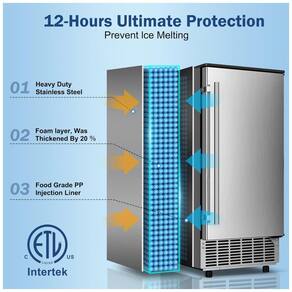 A Máquina de Gelo Sob Bancada RAPSUAR é um equipamento embutido comercial em aço inoxidável com isolamento térmico de três camadas, otimizado para produção de cubos de gelo em cozinhas, bares, escritórios e uso comercial leve. Gera até 43 kg de gelo por 24 horas, produzindo 40 cubos transparentes a cada 15-20 minutos, com reservatório de armazenamento de 16 kg para operação ininterrupta. O design sob bancada integra-se perfeitamente a balcões de altura padrão, com dimensões compactas de 43 cm (profundidade) x 48 cm (largura) x 63,5 cm (altura).